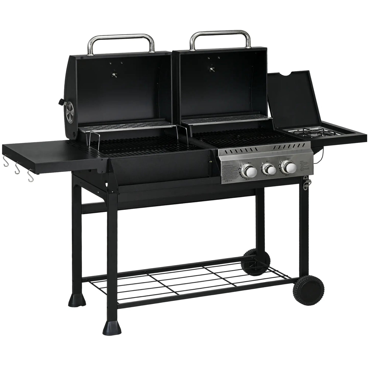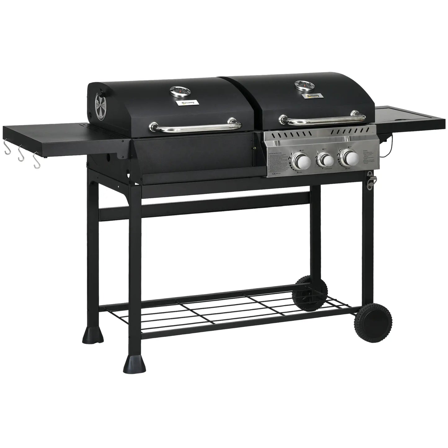 Outsunny Charcoal & Gas Combo BBQ Grill – Dual Fuel, Spacious Cooking & Ultimate Outdoor Convenience